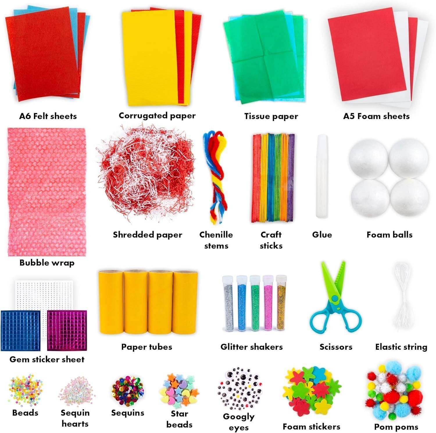 - Creative Variety: This arts and craft kit for kids comes packed with a wide assortment of fun materials, including googly eyes, colorful paper, tissue paper, foam balls, stickers, and kid-friendly craft scissors, encouraging endless imaginative projects.