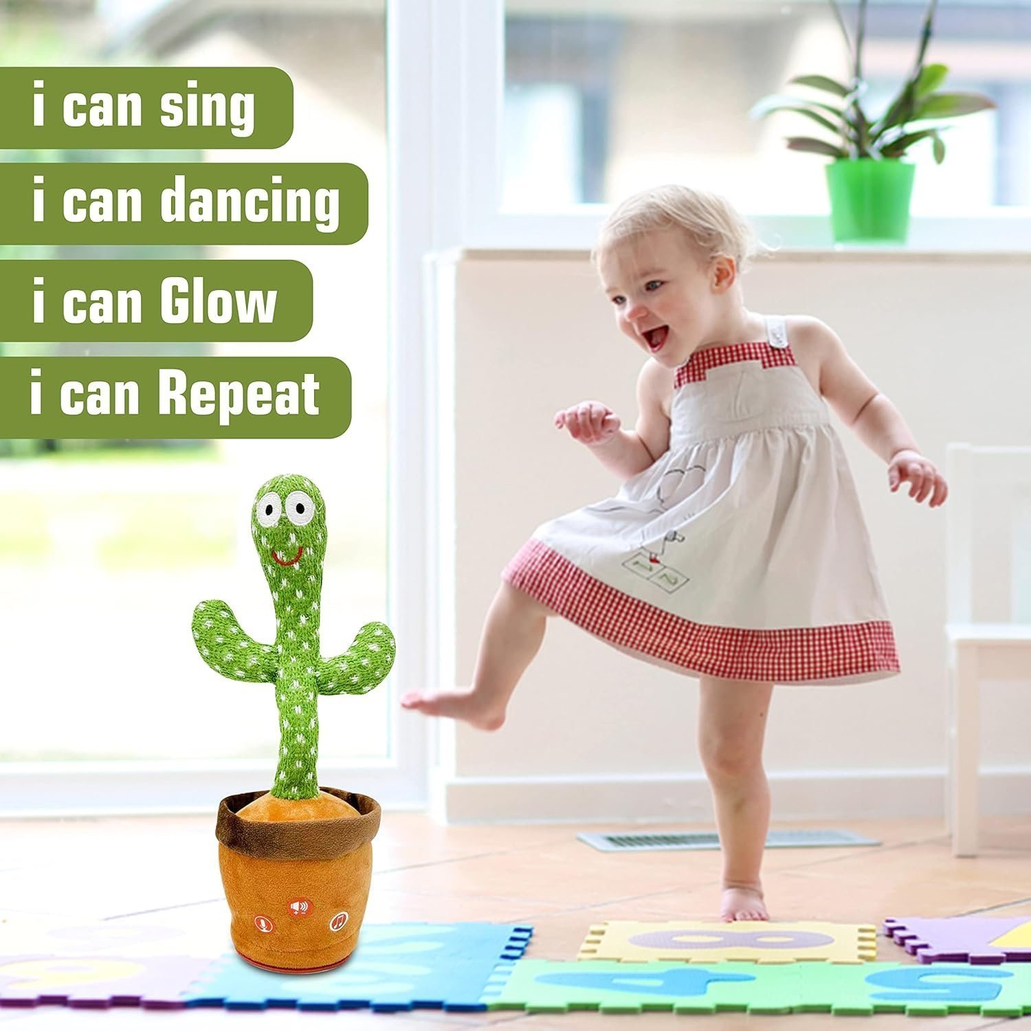 - ENDLESS FUN: Our singing cactus is an interactive toy for kids equipped with mimicking, talking and repeating functions that also delight your little one with a funny dance! Cute and fun, this baby toy will keep your baby engaged and happy for hours!