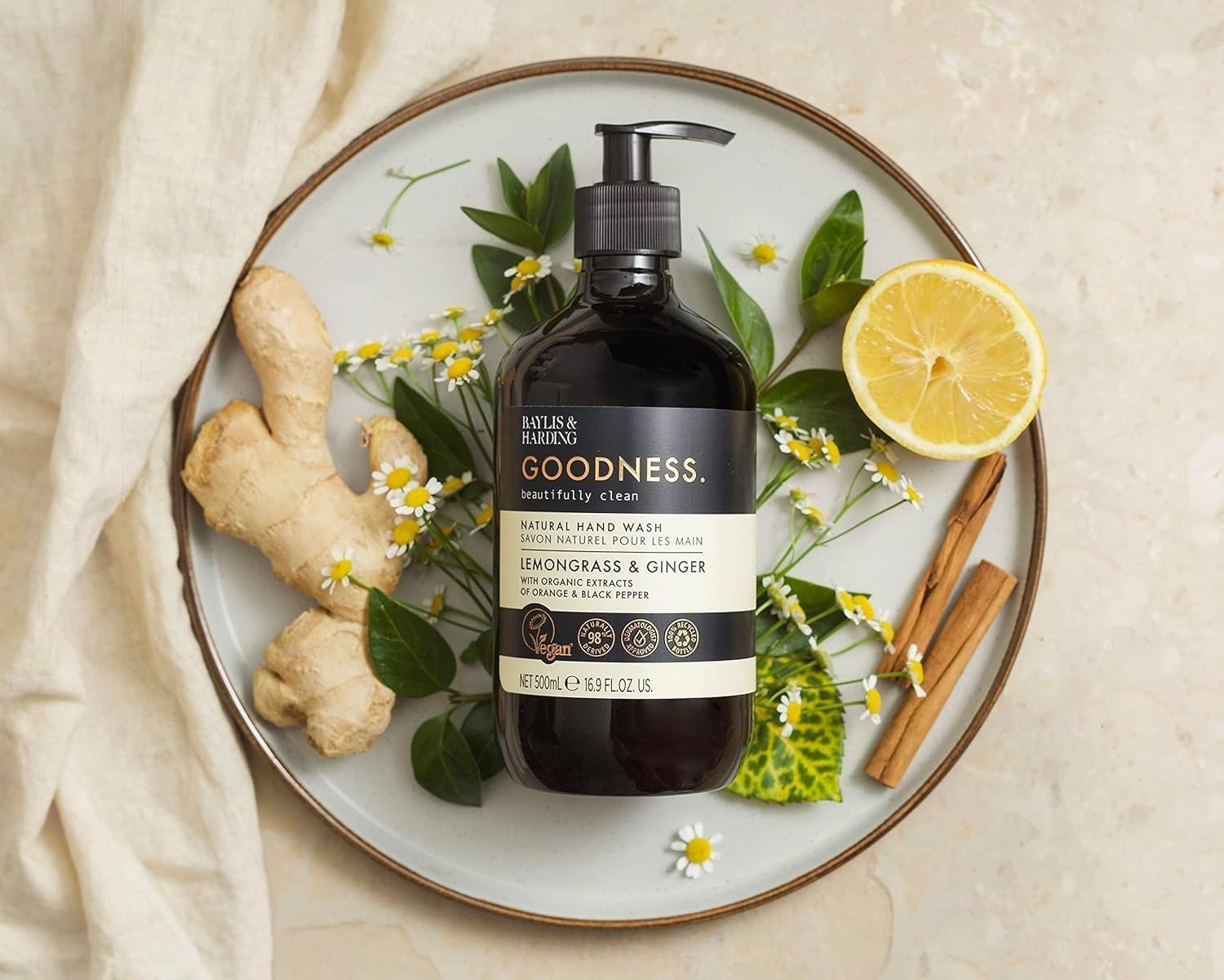 Baylis & Harding Goodness Lemongrass & Ginger Hand Wash, 500 ml (Pack of 3) – Vegan Friendly
