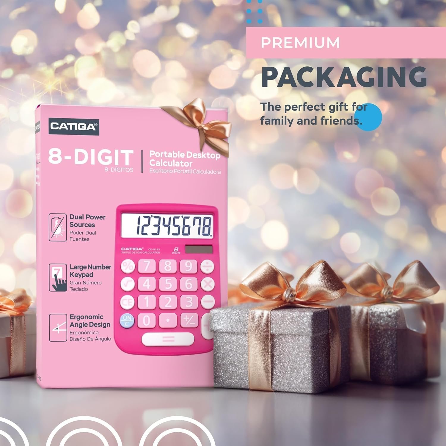 CATIGA CD-8185 Office and Home Style Calculator – 8-Digit LCD Display (Pink)