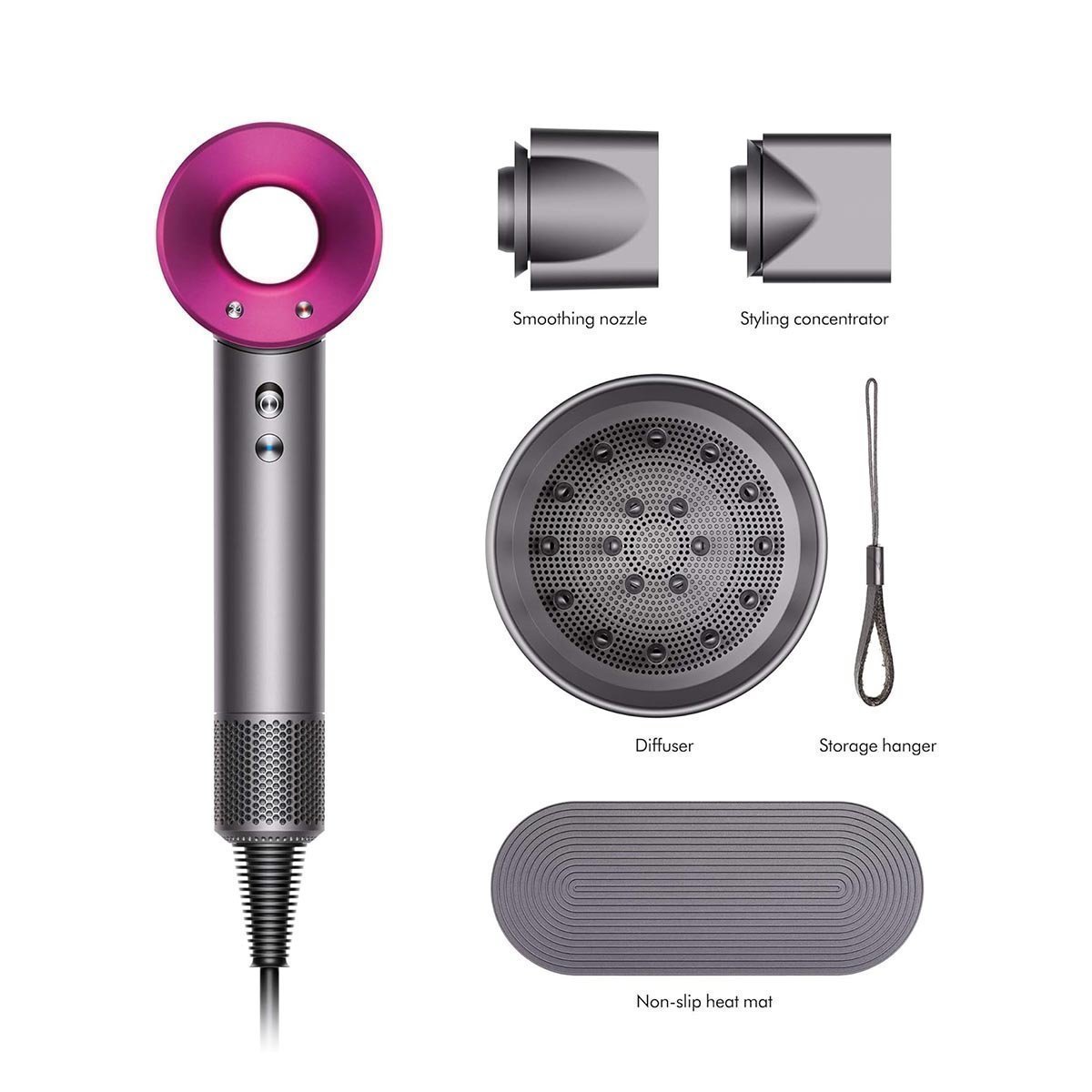 - 3 Magnetic attachments : Smoothning nozzle, styling concentrator and diffuser