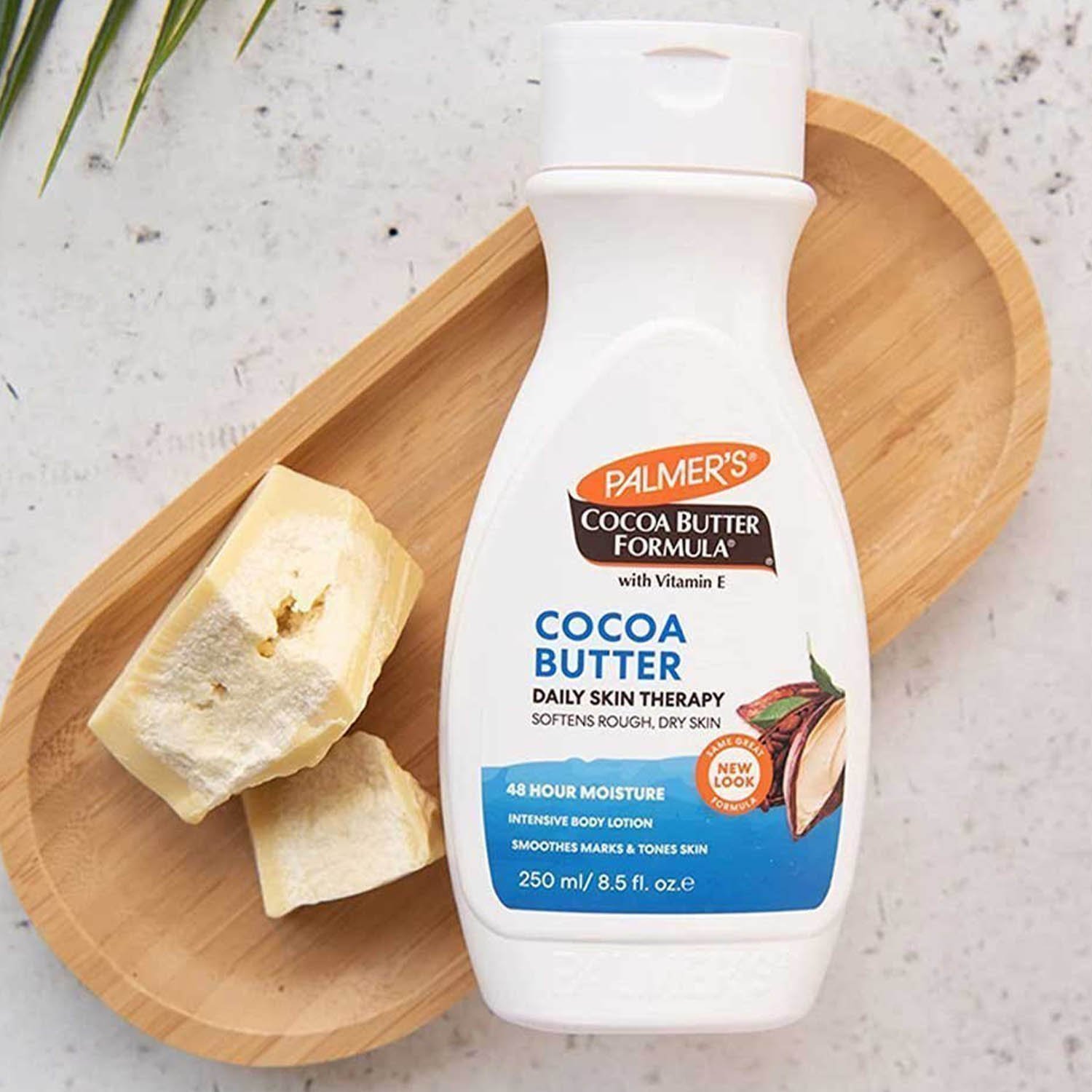 - Special Formula: This body lotion for dry skin is made with Cocoa Butter to naturally moisturize and Vitamin E to help improve the appearance of scars, stretch marks and skin imperfections, giving a more even and toned appearance
