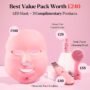 - FREE PRODUCTS WORTH $100 TO ELEVATE RESULTS : 3 complImentary products to maxamise your skincare results and get a complete spa-like experience. 1) A deep facial cleansing brush for surface-level cleaning. 2) Ultrasonic facial scrubber for deeper-level cleansing for better LED light penetration. 3) Green tea facial serum as it combination with light therapy provides 10x better results.